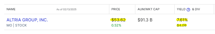 알트리아 그룹은 우리에게도 잘 알려진 말보로 등의 담배 브랜드를 보유한 미국의 대표 담배 회사입니다. 안정적으로 배당을 지급하고 있고 배당수익률도 매우 높은 편이라 투자자들에게 인기가 많은 종목 중 하나인데요, 무려 56년 연속 배당을 인상해 온 기업이라는 점에서 배당킹(Dividend King) 종목이기도 합니다.