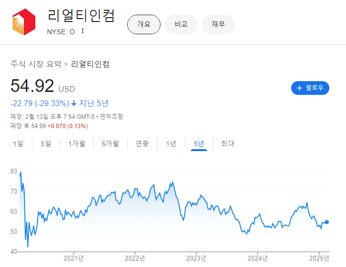 리얼티 인컴은 상업용 부동산에 투자하는 리츠(REIT) 종목입니다. 부동산 투자를 주식으로 한다고 생각하면 되는데요, 월배당 종목이기도 하고 부동산 상승기에는 주가 상승도 기대해 볼 수 있어서 투자자들의 관심을 받고 있습니다. 특히 2022년부터 부동산 가격이 많이 떨어지면서 리얼티 인컴 또한 주가가 많이 하락한 상태입니다. 주가가 낮은 만큼 배당률이 높아졌기에 관심을 가져볼 수 있는 종목입니다.