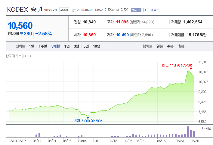 - 주요 구성 종목: 메리츠금융지주(20.5%), 한국금융지주(18.3%), 미래에셋증권(17.14%), 삼성증권(15.1%), NH투자증권(9.5%), 키움증권(8.7%) 등