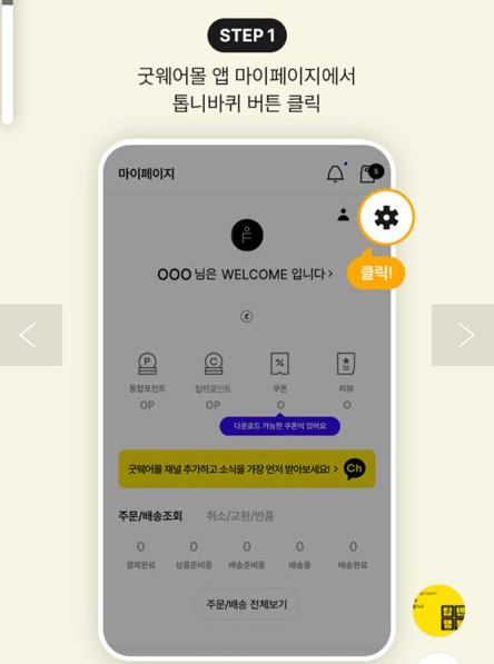 1. 탑텐 어플 마이페이지에서 톱니바퀴(설정) 클릭